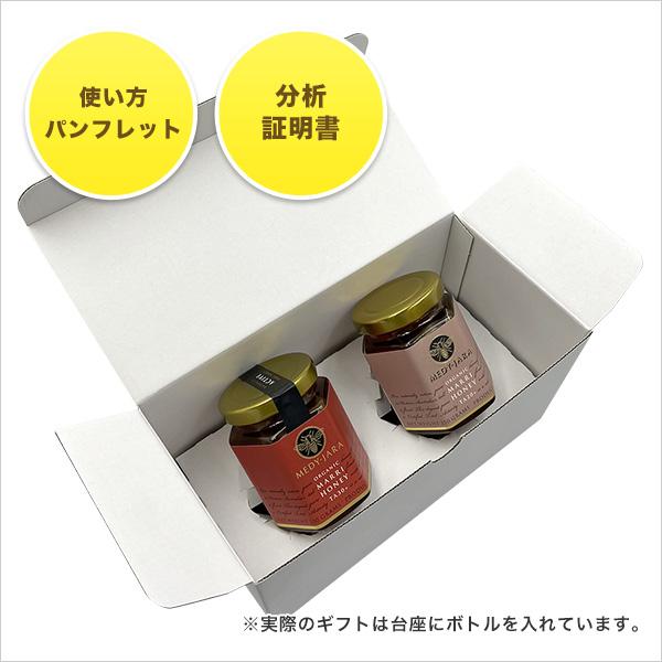 ★MEDY-JARAオリジナル健康はちみつギフト:専用BOX/分析証明書・使い方パンフレット付/包装/のし専用BOXに入れてお届けします(包装・のし対応)。当店の健康はちみつには「分析証明書」と「使い方パンフレッド」を同封しており、贈り物としても先様も使い方が分かりとても評判です!