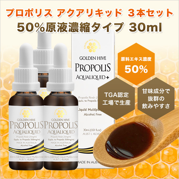 プロポリス アクアリキッド 3本セット 原液濃縮タイプ 30ml 原料エキス濃度50% ノンアルコール フラボノイドなど健康成分